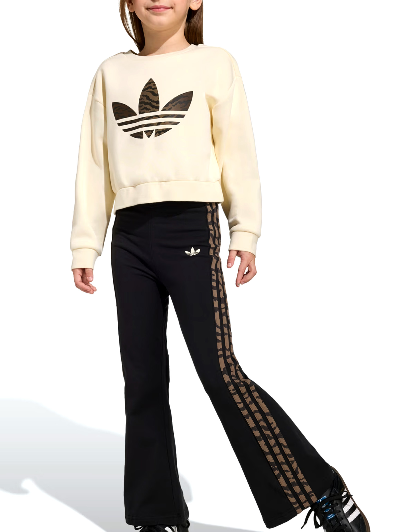 Realizzata con materiali morbidi e resistenti, questa tuta Crew Set completa è composta da felpa girocollo e pantaloni coordinati, pensati per offrire massima libertà di movimento durante il gioco, lo sport o il tempo libero. Il tessuto in cotone con percentuale di poliestere assicura una piacevole sensazione sulla pelle e una vestibilità confortevole, mantenendo la forma anche dopo numerosi lavaggi. Il design iconico firmato Adidas si distingue per il logo ben visibile sul petto e sulla gamba, simbolo di qualità e stile sportivo intramontabile. La felpa presenta girocollo a costine per una vestibilità stabile e pratica, mentre i polsini e lorlo elasticizzati contribuiscono a trattenere il calore nelle giornate più fresche. I pantaloni sono dotati di vita elasticizzata che garantisce comfort e facilità di indosso, adattandosi perfettamente alla silhouette della bambina senza stringere.