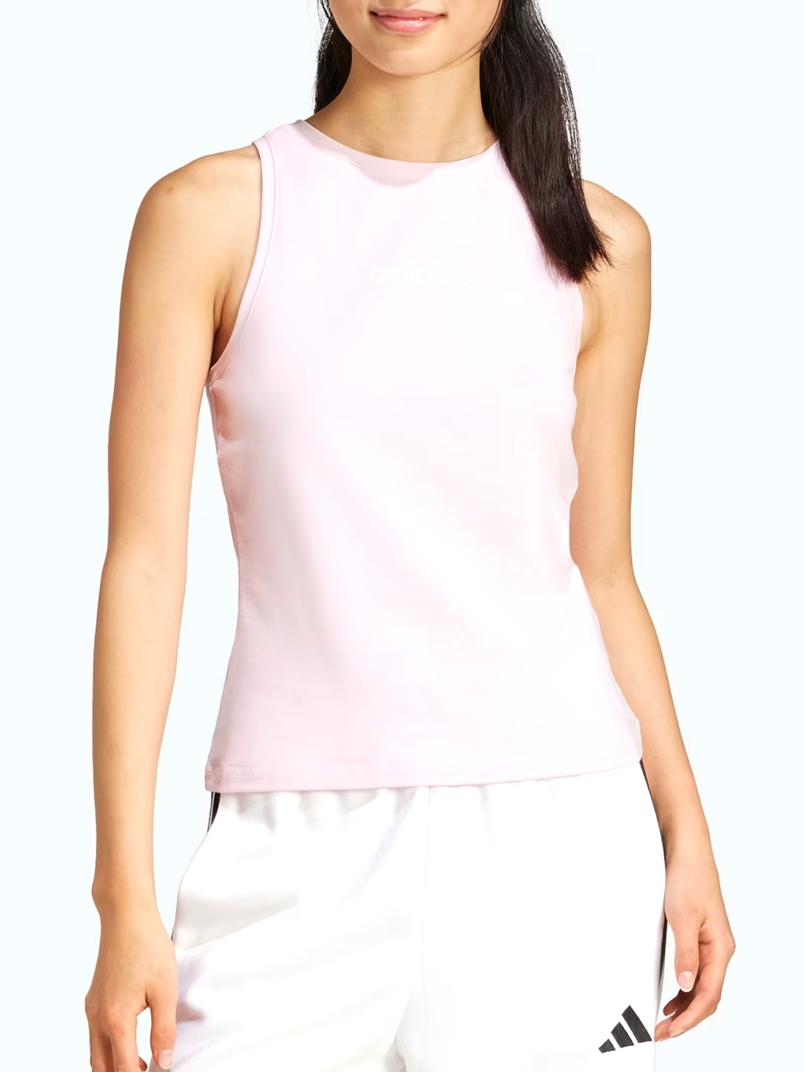 La canotta da donna Adidas Essentials Linear è un capo dabbigliamento sportivo pensato per offrire comfort e stile sia durante lattività fisica che nei momenti di relax.