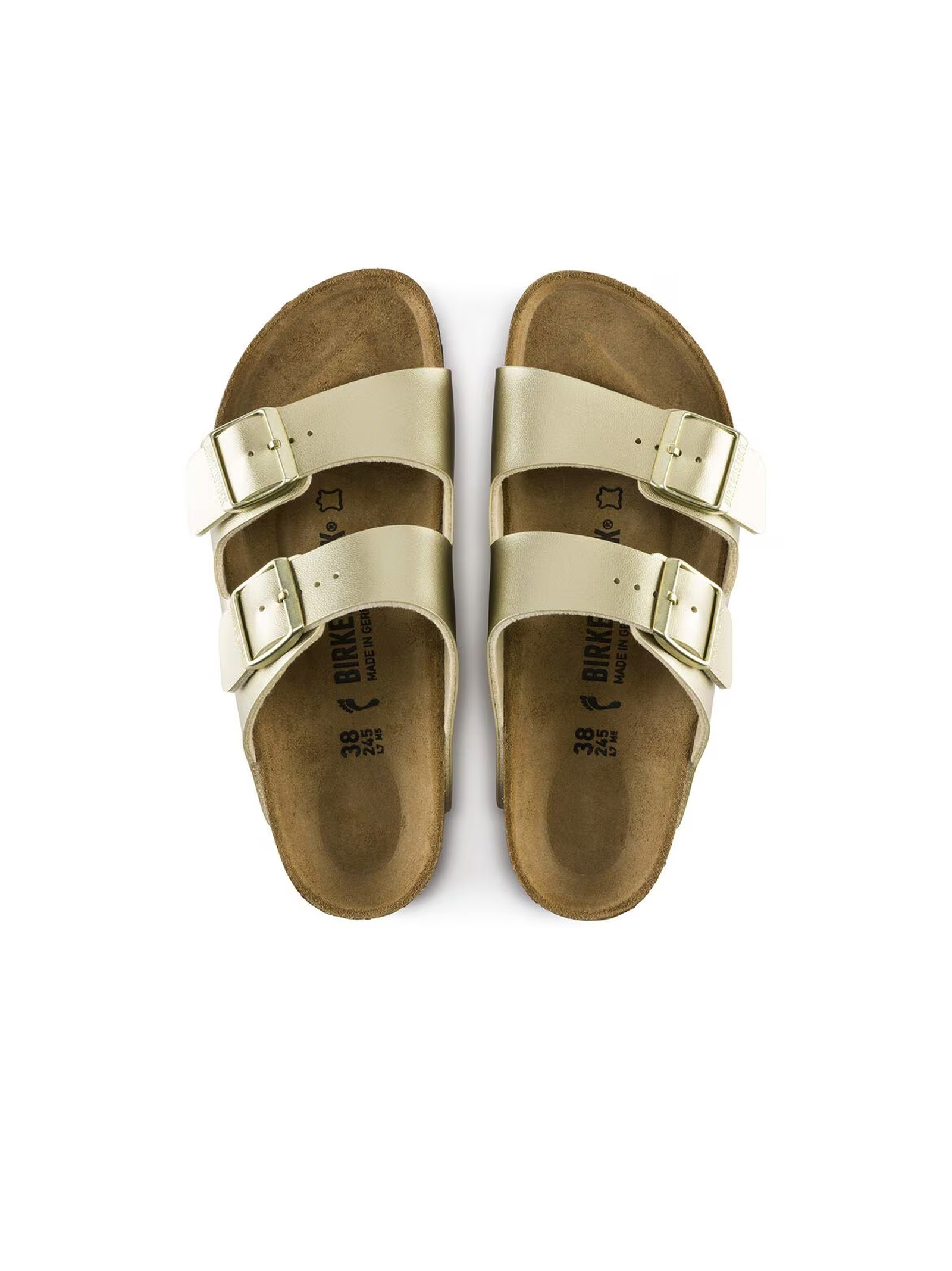 Questo modello è caratterizzato da una tomaia in Birko-Flor, un materiale sintetico innovativo sviluppato da Birkenstock che coniuga estetica e funzionalità: resistente, facile da pulire e particolarmente delicato sulla pelle grazie alla sua fodera interna in morbido tessuto non tessuto. La struttura a doppia fascia regolabile con fibbie in metallo consente una calzata personalizzabile, garantendo comfort e stabilità in ogni momento della giornata. Il cuore del modello Arizona è il celebre plantare anatomico in sughero e lattice, che assicura un eccellente supporto al piede grazie alla sua forma studiata per seguire la naturale conformazione del piede umano. La suola in EVA, leggera e flessibile, offre una buona ammortizzazione e una trazione sicura su varie superfici.