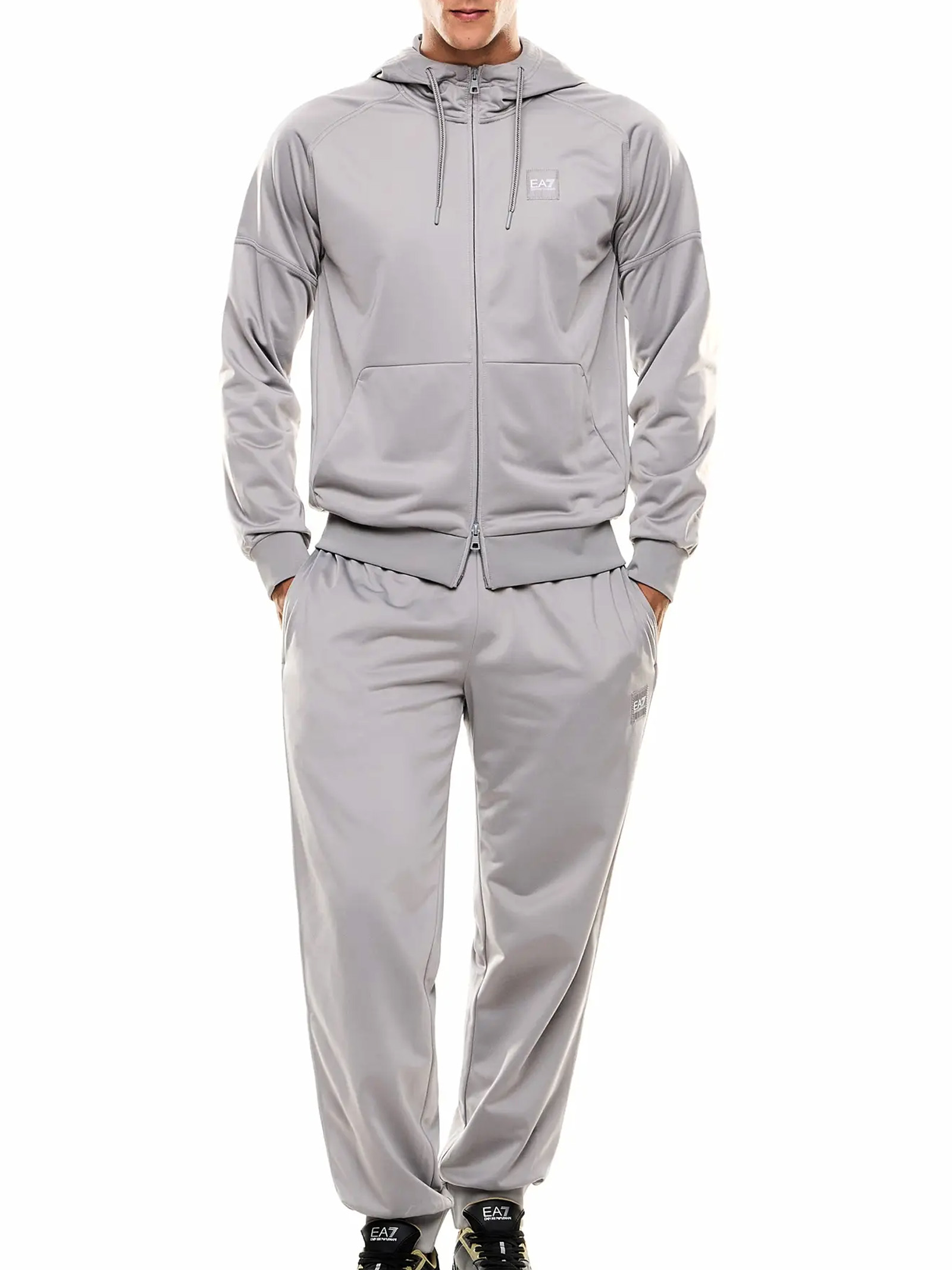 Realizzata con materiali di alta qualità, la tuta EA7 Emporio Armani garantisce una vestibilità perfetta e unottima traspirabilità, ideale sia per lattività sportiva che per il tempo libero. Il design moderno si caratterizza per linee essenziali e dettagli distintivi del brand EA7, come il logo iconico sul petto e sulle gambe, che conferiscono un tocco di eleganza sportiva senza tempo. La tuta comprende una felpa con cappuccio regolabile e una chiusura frontale con zip, abbinata a pantaloni dal taglio ergonomico con elastico in vita e polsini aderenti, assicurando massima libertà di movimento.