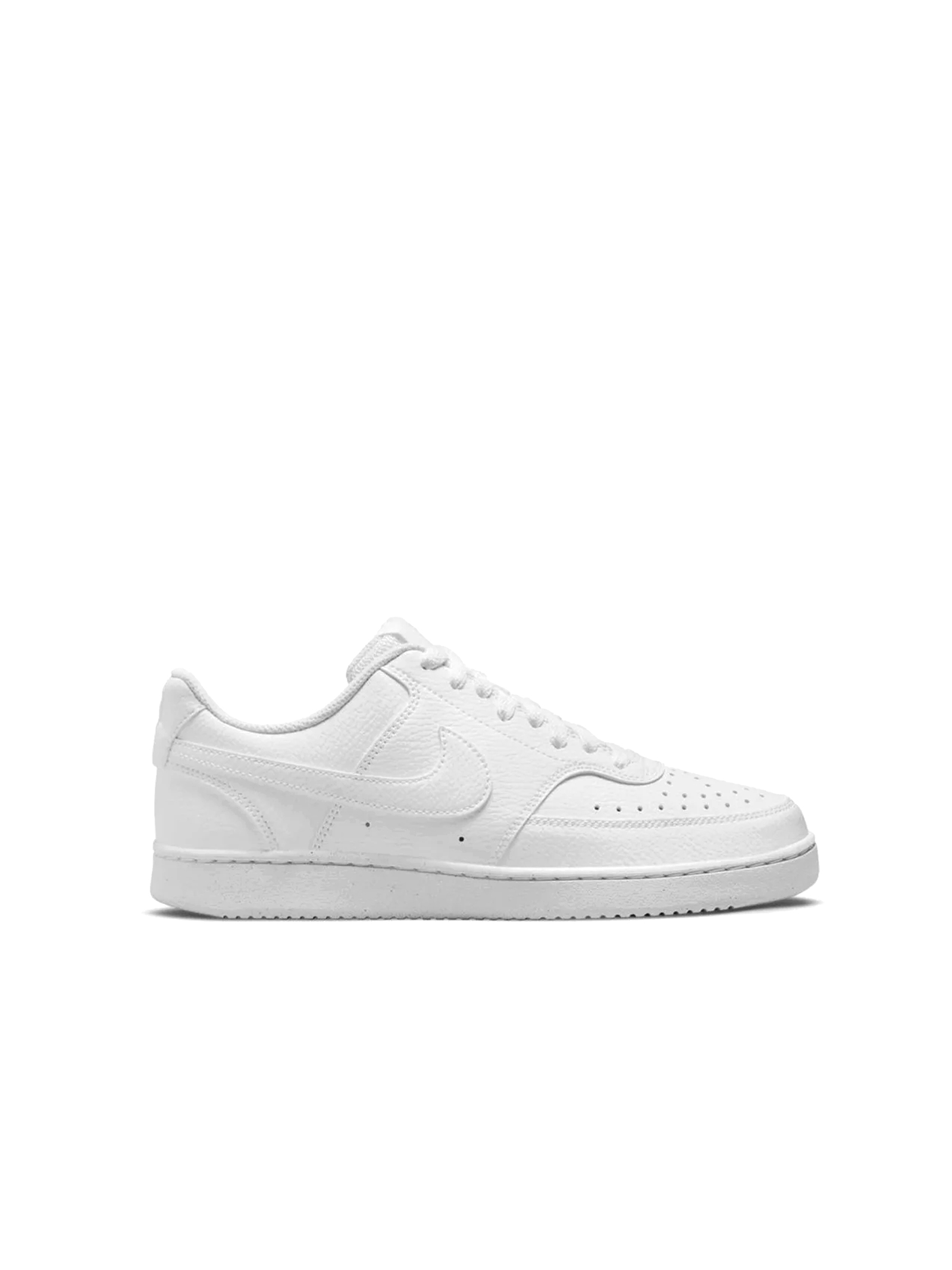 Le scarpe Court Vision Low Next Nature uniscono unestetica retrò a materiali di nuova generazione, con una tomaia realizzata almeno per il 20% in materiali riciclati in base al peso, a dimostrazione dellimpegno del brand verso la sostenibilità ambientale. La silhouette bassa, elegante e slanciata, si distingue per le linee pulite e lispirazione vintage, mentre i dettagli traforati sulla punta e sui lati migliorano la traspirabilità durante luso quotidiano. La colorazione bianca, semplice e versatile, è arricchita da inserti tono su tono e dal classico Swoosh Nike che si estende sui lati, donando un tocco distintivo e riconoscibile. Lintersuola in schiuma leggera assicura un comfort ottimale per tutta la giornata, mentre la suola in gomma resistente offre unaderenza stabile e duratura su diverse superfici.