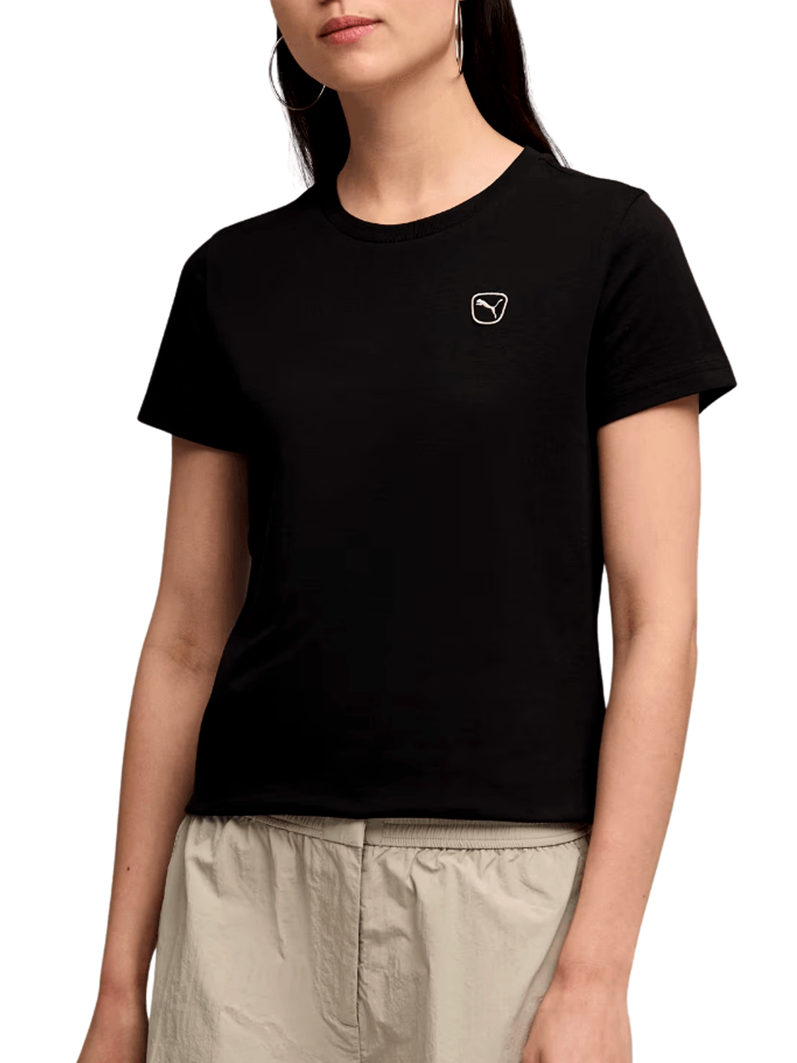 Realizzata in cotone morbido e traspirante, questa maglietta Puma Essentials Elevated Tee garantisce una vestibilità regolare e confortevole, ideale per essere indossata dalla mattina alla sera. Il colletto a girocollo dalla finitura curata e il taglio femminile esaltano la silhouette con naturalezza. Il logo Cat di Puma ricamato sul petto conferisce al capo un tocco raffinato e riconoscibile, elevando l'estetica rispetto alle classiche t-shirt basic. Grazie alla sua versatilità, si abbina perfettamente a leggings, jeans o shorts, adattandosi a ogni occasione casual.
