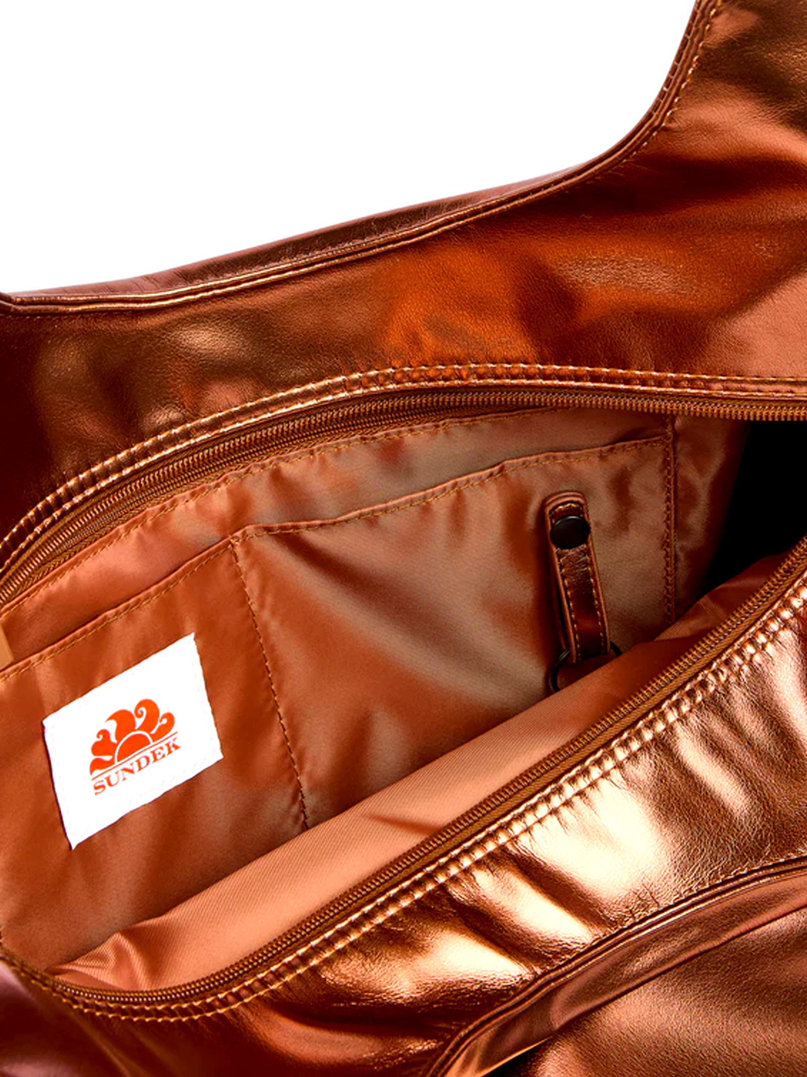 Realizzata in materiale laminato resistente e leggero, la borsa da mare Sundek Laminated protegge il contenuto da sabbia e umidità offrendo al tempo stesso un look lucido e distintivo. L'ampio scomparto interno consente di organizzare facilmente telo, crema solare e accessori, mentre i manici robusti assicurano una presa comoda anche a pieno carico. Il design capiente e pratico la rende ideale come borsa mare donna e shopper estiva versatile.